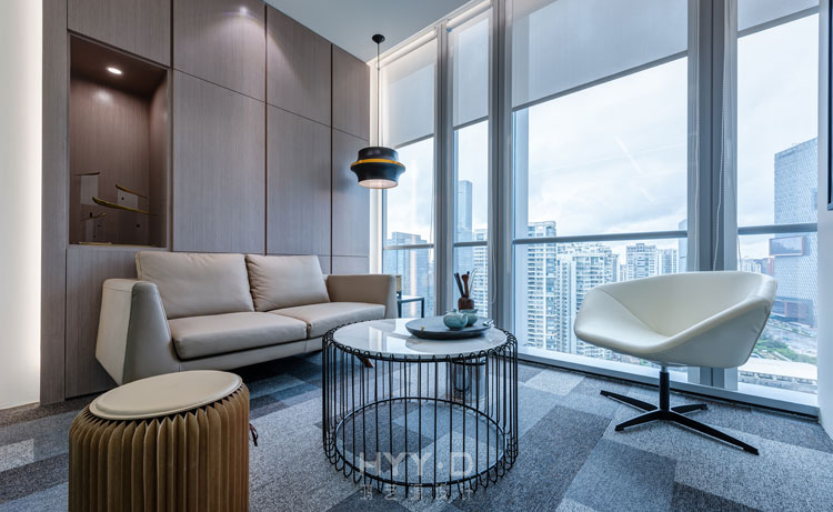 1、洽谈区与会客区的隔断设计,实现了功能的扩大化。