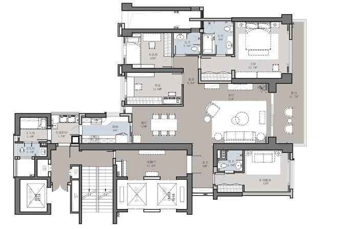 私宅设计中尤其要考虑到居住者的使用需求,用心去衡度每一个细节、元素在空间中的配比。对于空间的美而言,设计师创造出居住的氛围,更多地还是需要由居住者去感受和传递……