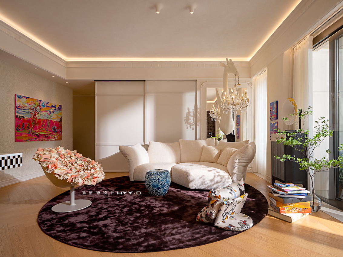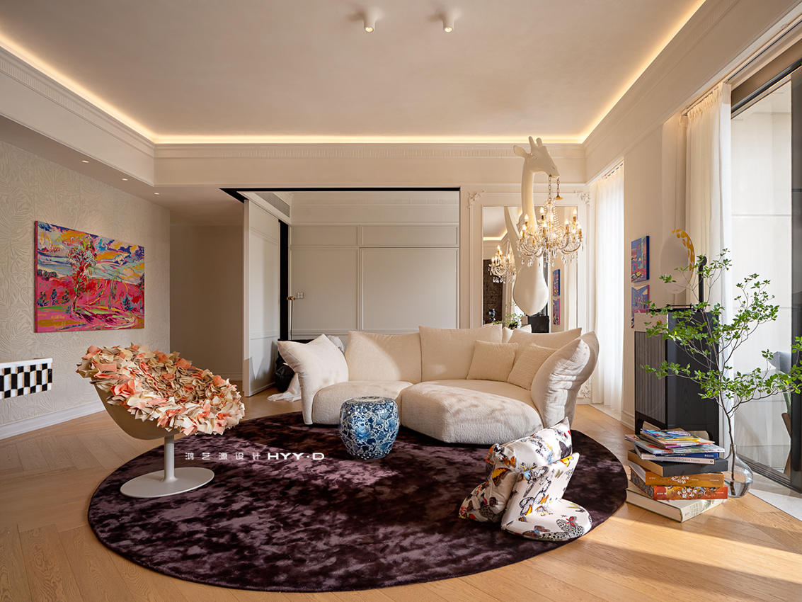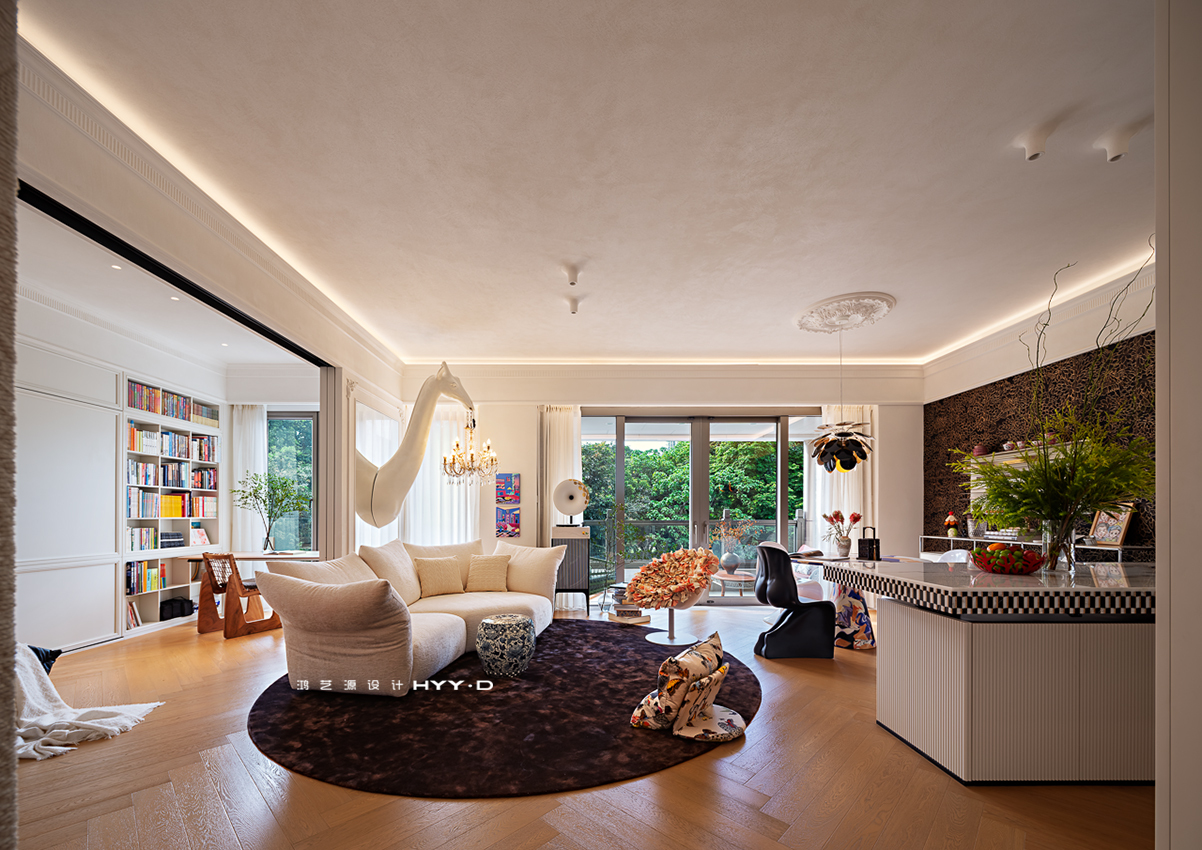 最终,鸿艺源设计仅用4个月时间,便将3房改造成4房格局。新家不仅拥有双厅、多功能房与大露台花园,还改造了独立衣帽间。整体设计延续了去风格化与多功能的理念。